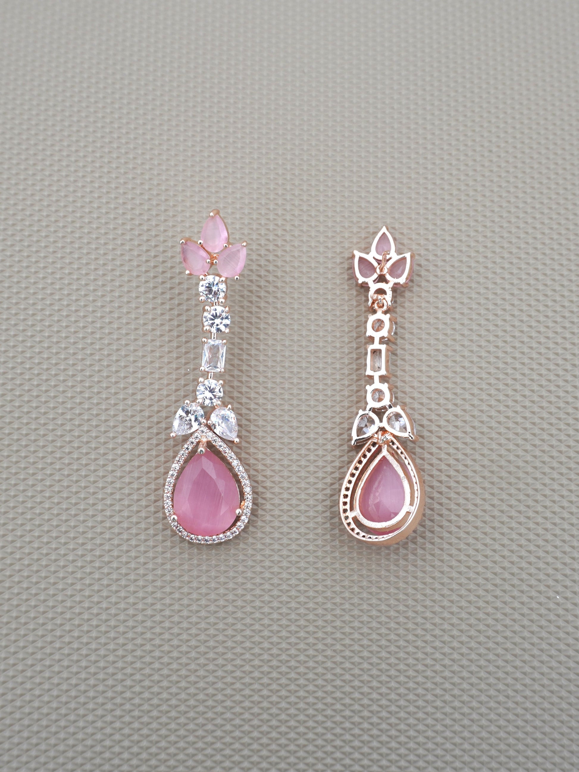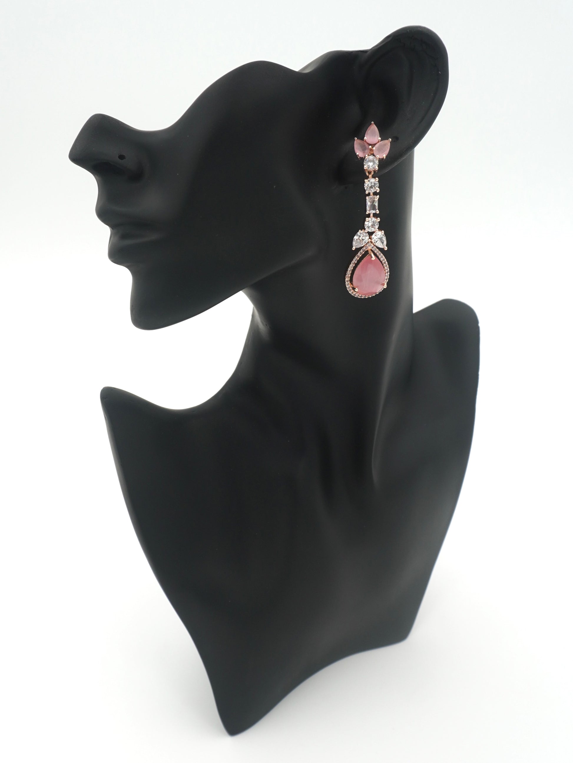 "Dangler earrings" are a type of earring characterized by a design that hangs down below the earlobe, creating a dangling effect. They are typically attached to the earlobe with a stud or hook and feature a decorative element that extends below the earlobe. Dangler earrings come in various styles, lengths, and designs, ranging from simple chains or single gemstones to more elaborate designs with multiple components such as beads, charms, feathers, or intricate metalwork. They are popular for adding movement and a stylish accent to an outfit, often worn for both casual and formal occasions depending on their design and materials.