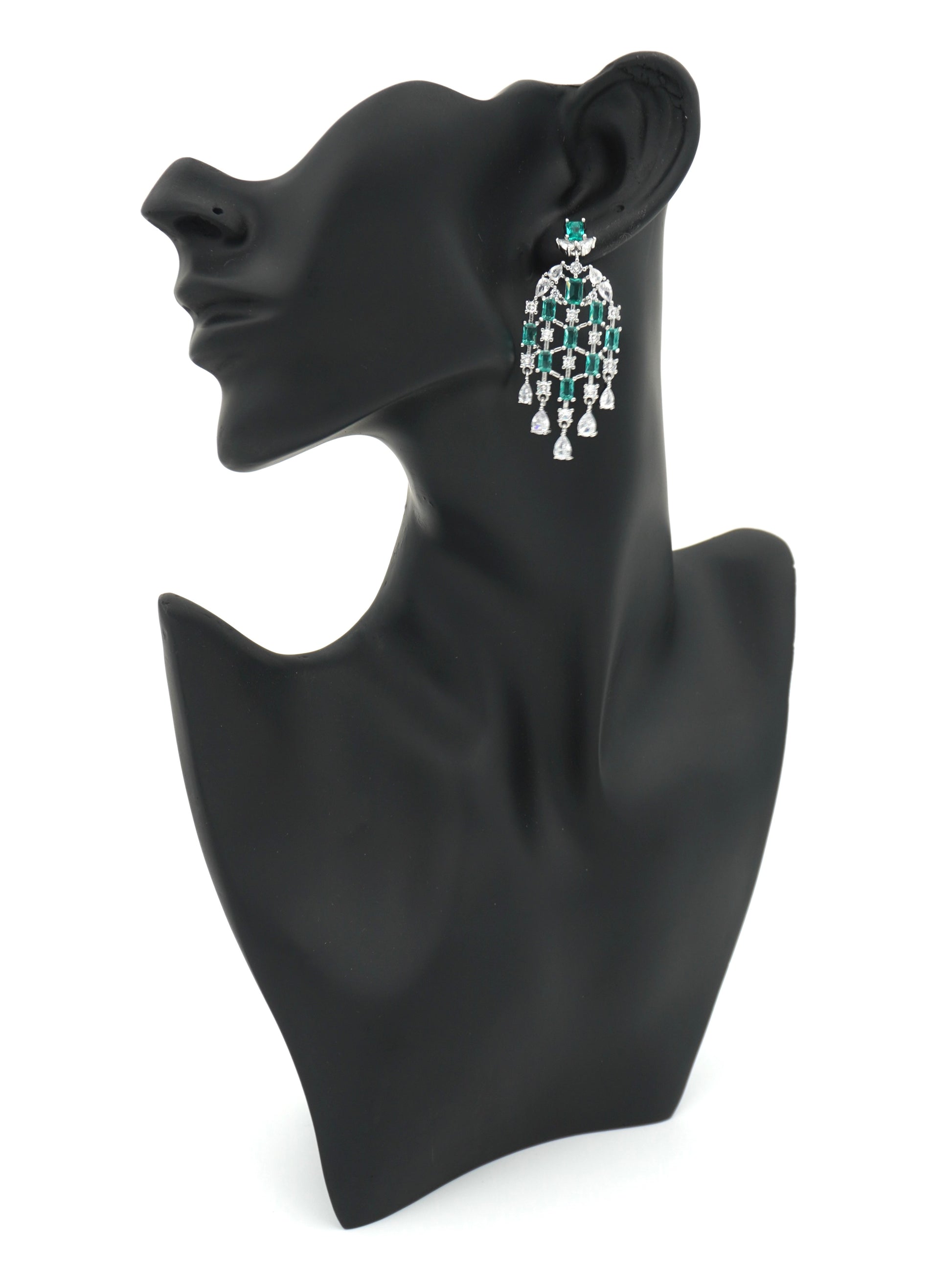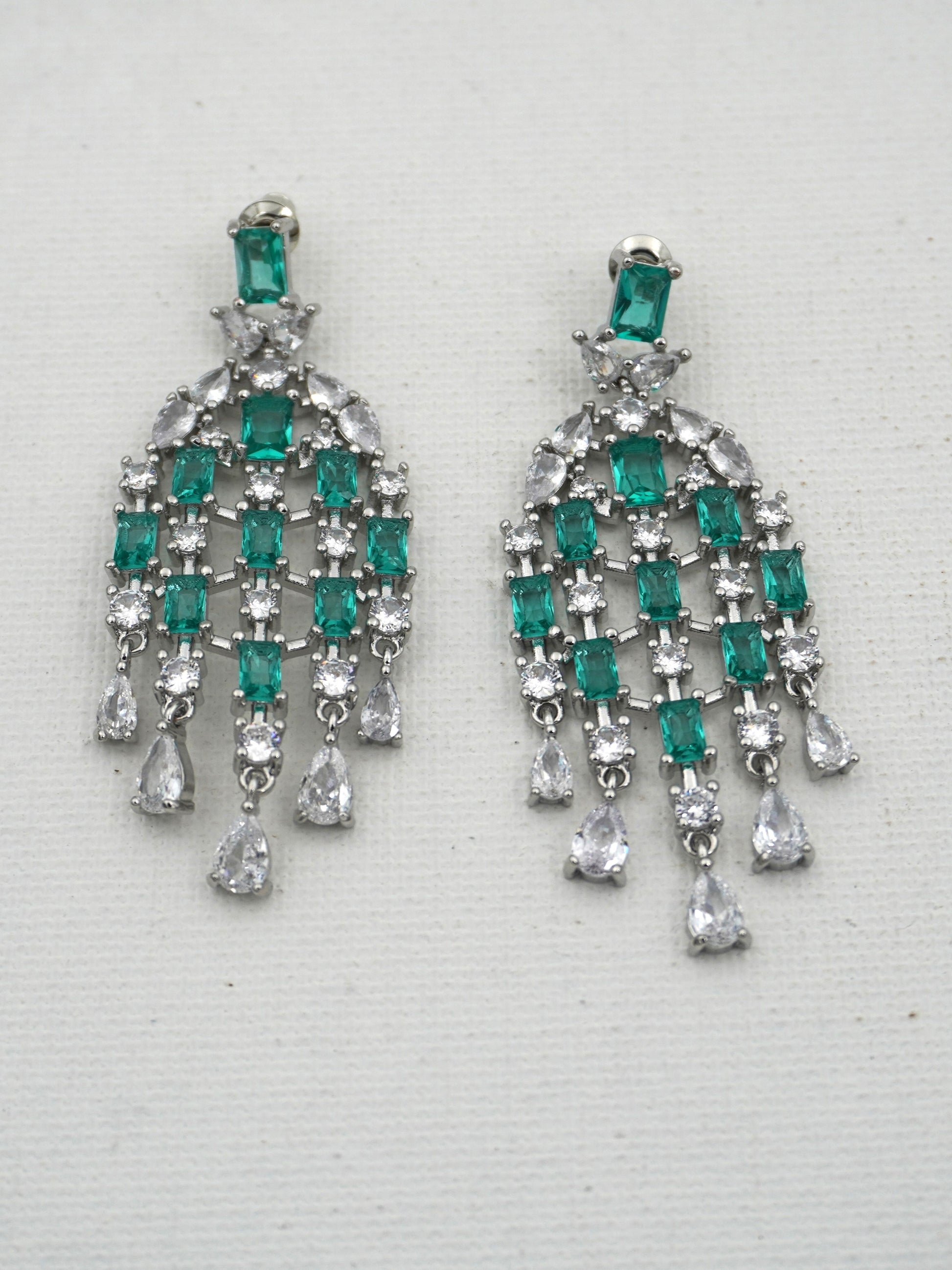 "Dangler earrings" are a type of earring characterized by a design that hangs down below the earlobe, creating a dangling effect. They are typically attached to the earlobe with a stud or hook and feature a decorative element that extends below the earlobe. Dangler earrings come in various styles, lengths, and designs, ranging from simple chains or single gemstones to more elaborate designs with multiple components such as beads, charms, feathers, or intricate metalwork. They are popular for adding movement and a stylish accent to an outfit, often worn for both casual and formal occasions depending on their design and materials.