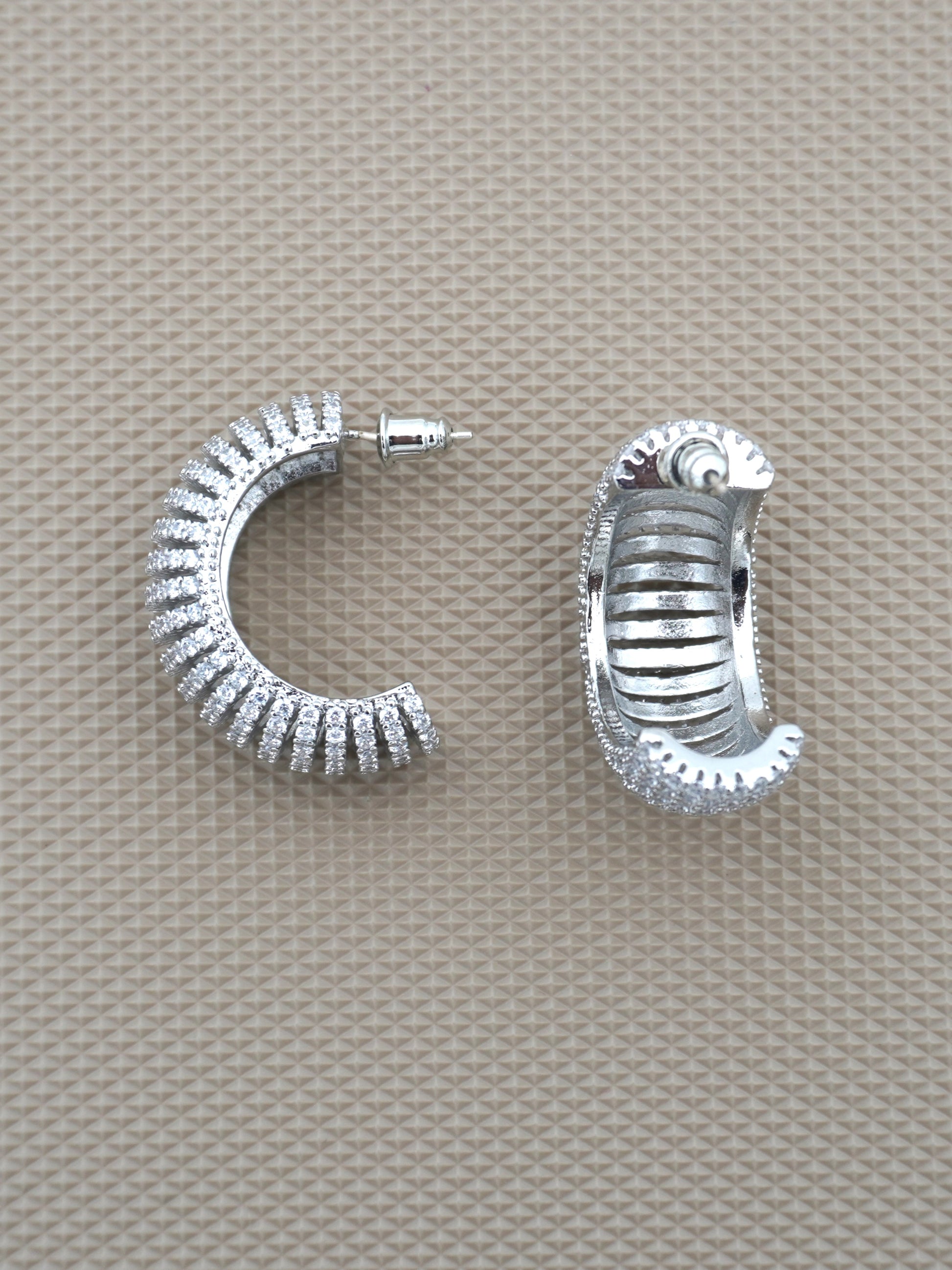 Hoop earrings are a style of earrings that are circular or semi-circular in shape and typically made from metal tubing or wire. They form a complete circle or oval shape and come in various sizes, ranging from small hoops that hug the earlobe to larger hoops that dangle below the earlobe. Hoop earrings can be simple and classic or adorned with gemstones, beads, or other decorative elements. They are a popular choice for both casual and formal wear, adding a stylish and sometimes bold accent to an outfit.