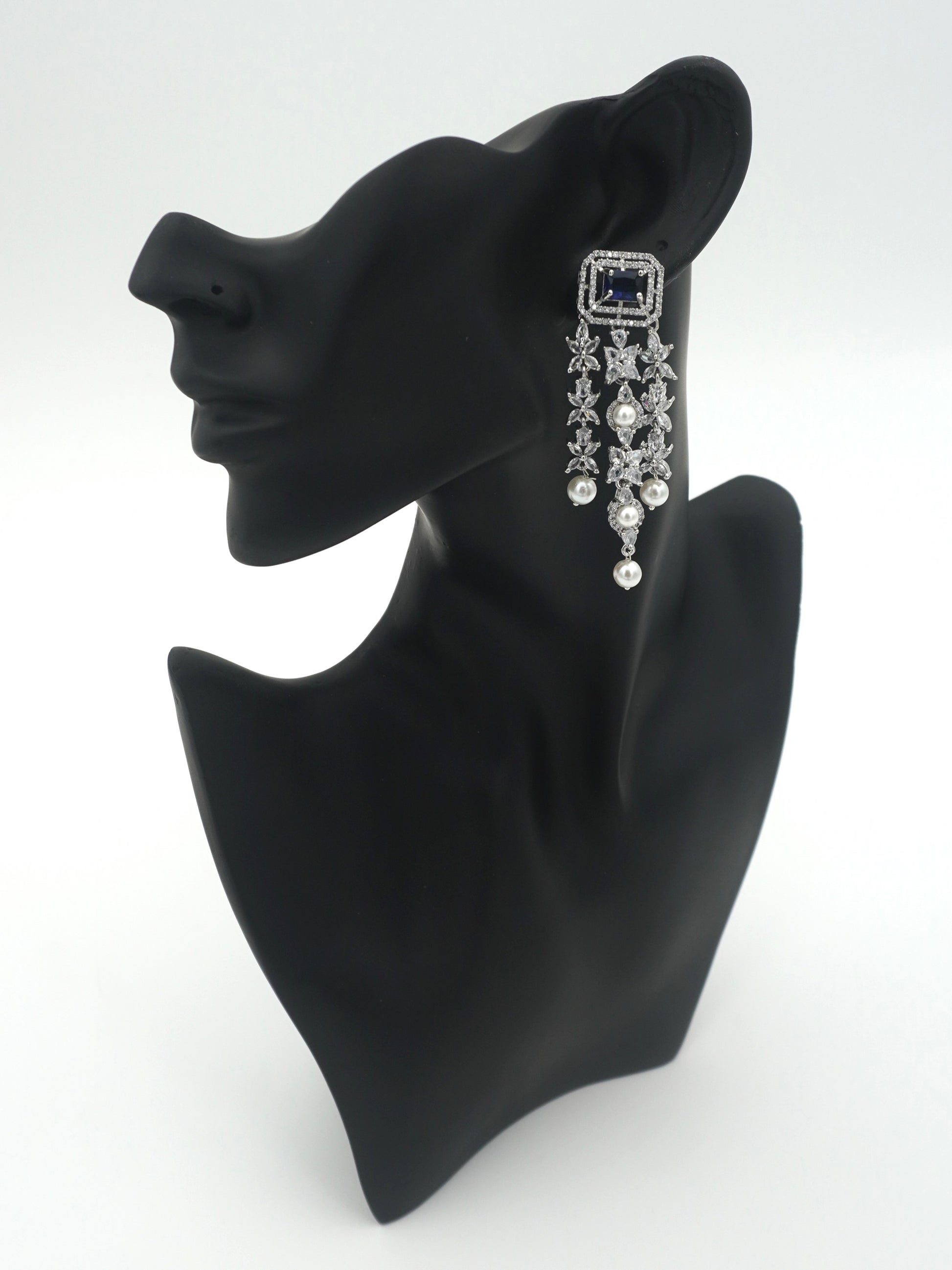 "Dangler earrings" are a type of earring characterized by a design that hangs down below the earlobe, creating a dangling effect. They are typically attached to the earlobe with a stud or hook and feature a decorative element that extends below the earlobe. Dangler earrings come in various styles, lengths, and designs, ranging from simple chains or single gemstones to more elaborate designs with multiple components such as beads, charms, feathers, or intricate metalwork. They are popular for adding movement and a stylish accent to an outfit, often worn for both casual and formal occasions depending on their design and materials.