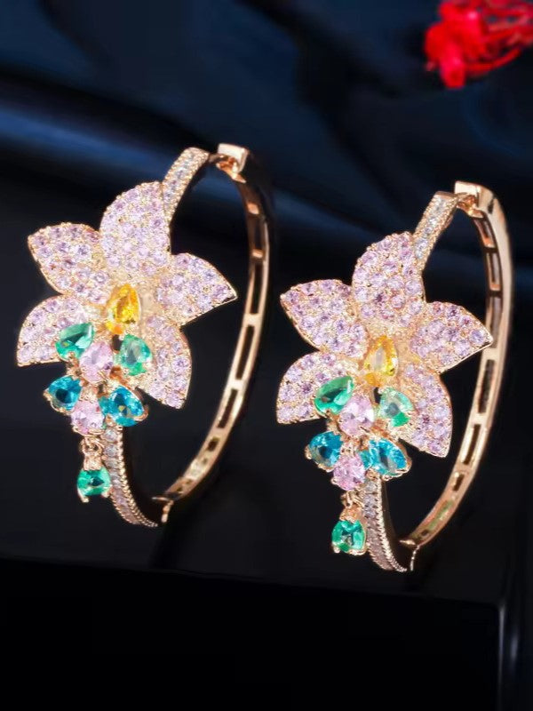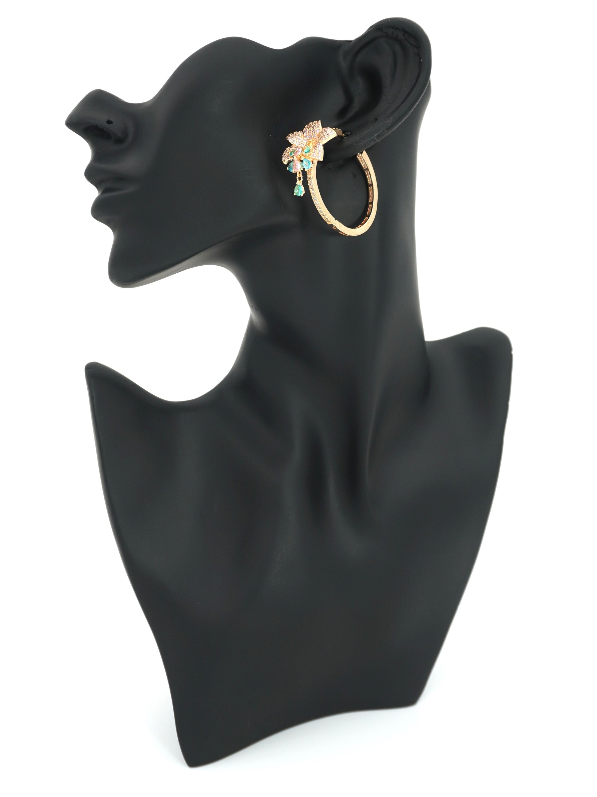 Hoop earrings are a style of earrings that are circular or semi-circular in shape and typically made from metal tubing or wire. They form a complete circle or oval shape and come in various sizes, ranging from small hoops that hug the earlobe to larger hoops that dangle below the earlobe. Hoop earrings can be simple and classic or adorned with gemstones, beads, or other decorative elements. They are a popular choice for both casual and formal wear, adding a stylish and sometimes bold accent to an outfit.