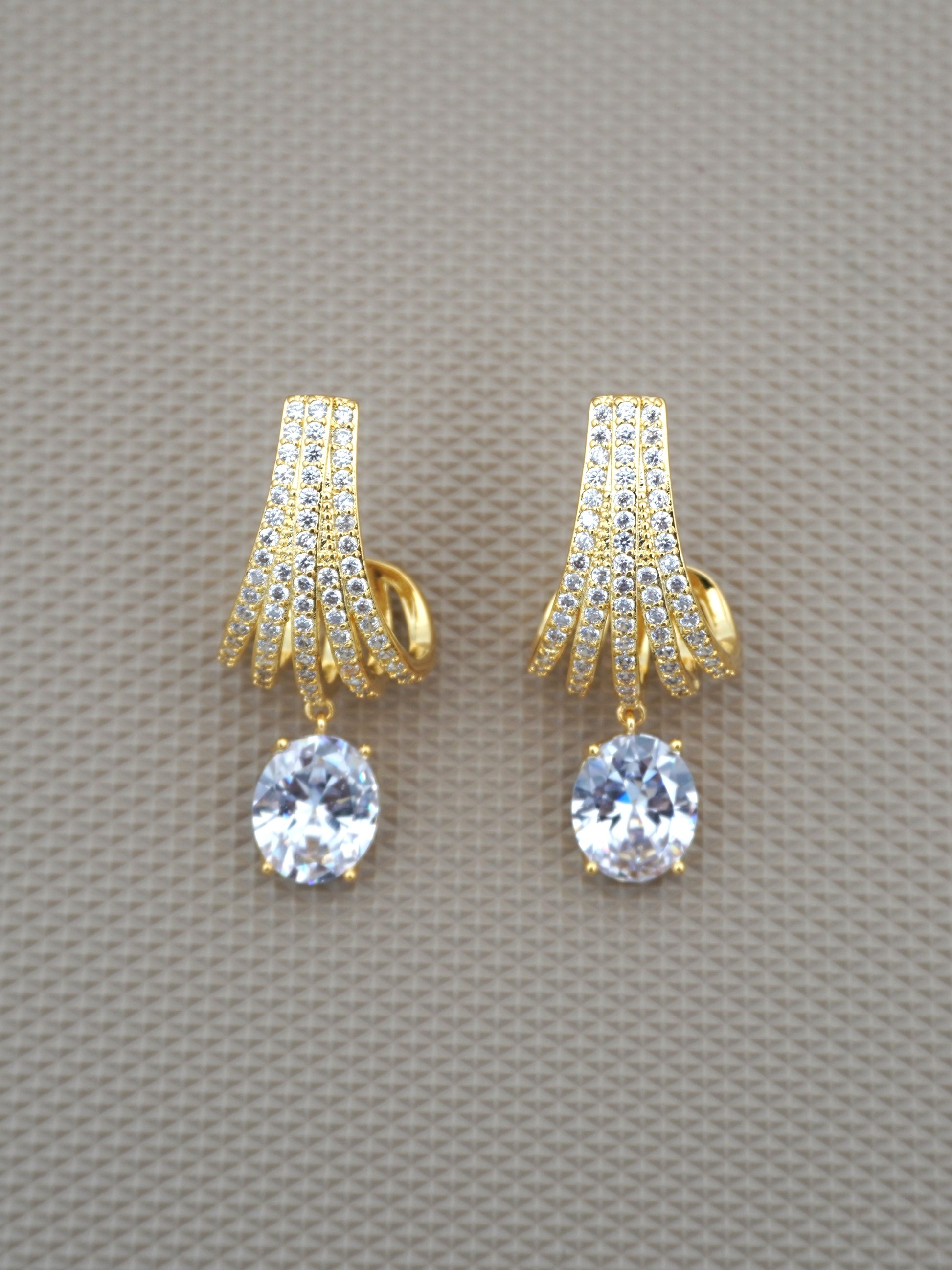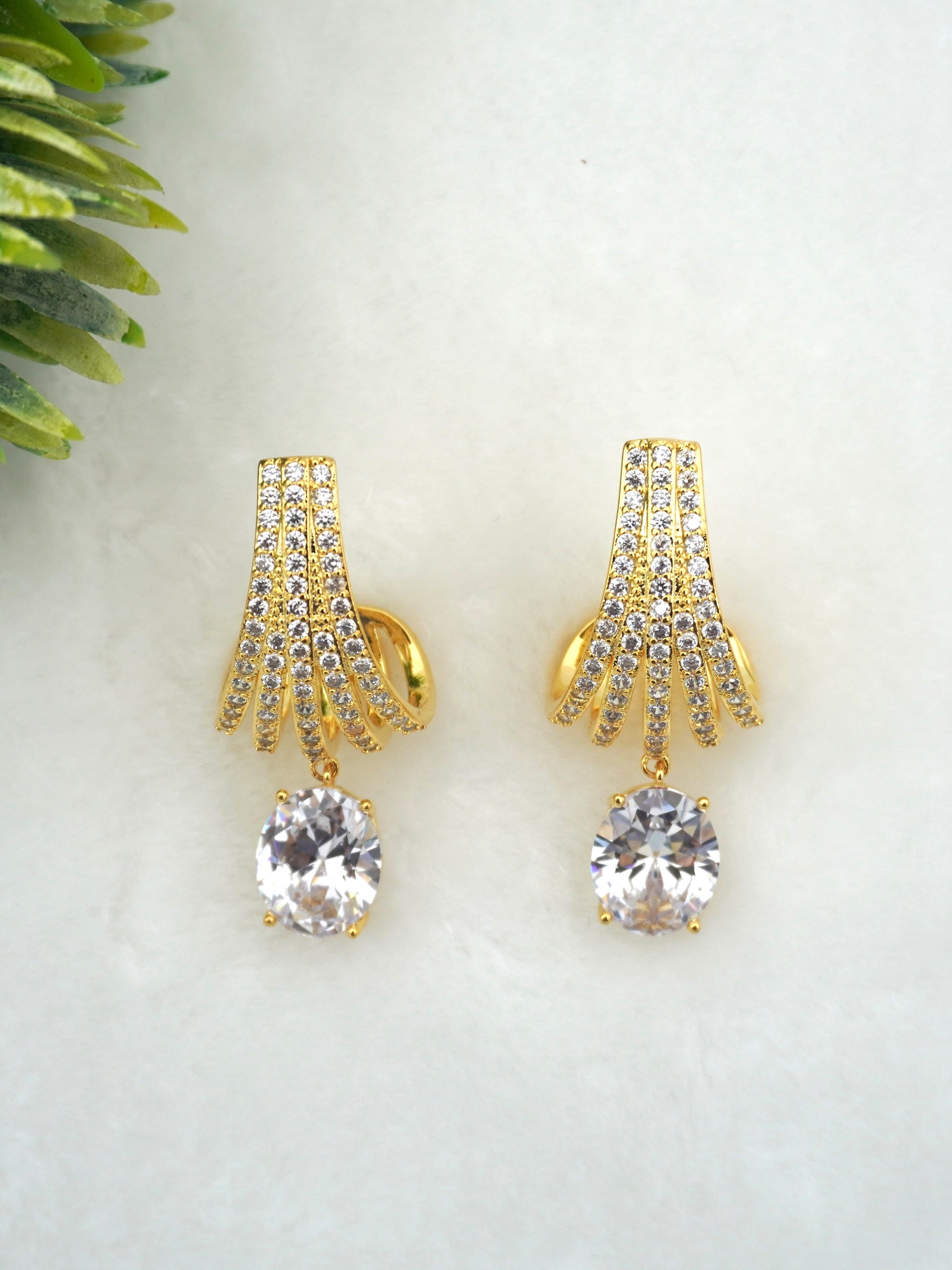 "Dangler earrings" are a type of earring characterized by a design that hangs down below the earlobe, creating a dangling effect. They are typically attached to the earlobe with a stud or hook and feature a decorative element that extends below the earlobe. Dangler earrings come in various styles, lengths, and designs, ranging from simple chains or single gemstones to more elaborate designs with multiple components such as beads, charms, feathers, or intricate metalwork. They are popular for adding movement and a stylish accent to an outfit, often worn for both casual and formal occasions depending on their design and materials.