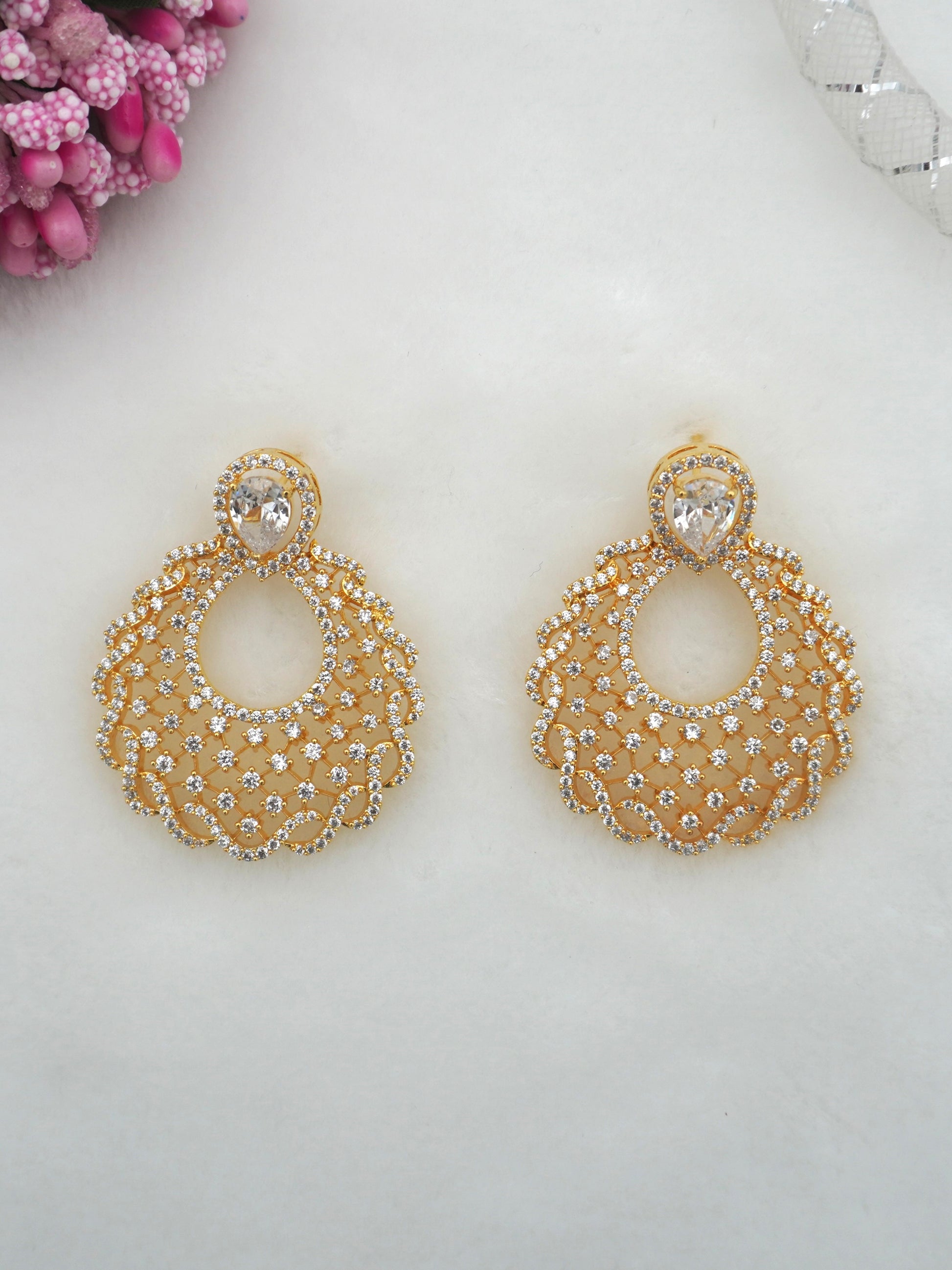Chandelier American diamond earrings are a luxurious and dazzling addition to any jewellery collection. Their intricate design and sparkling American diamonds make them perfect for adding a touch of glamour to special occasions. Whether for weddings, formal events, or festive celebrations, these earrings are sure to elevate your look and draw admiration.