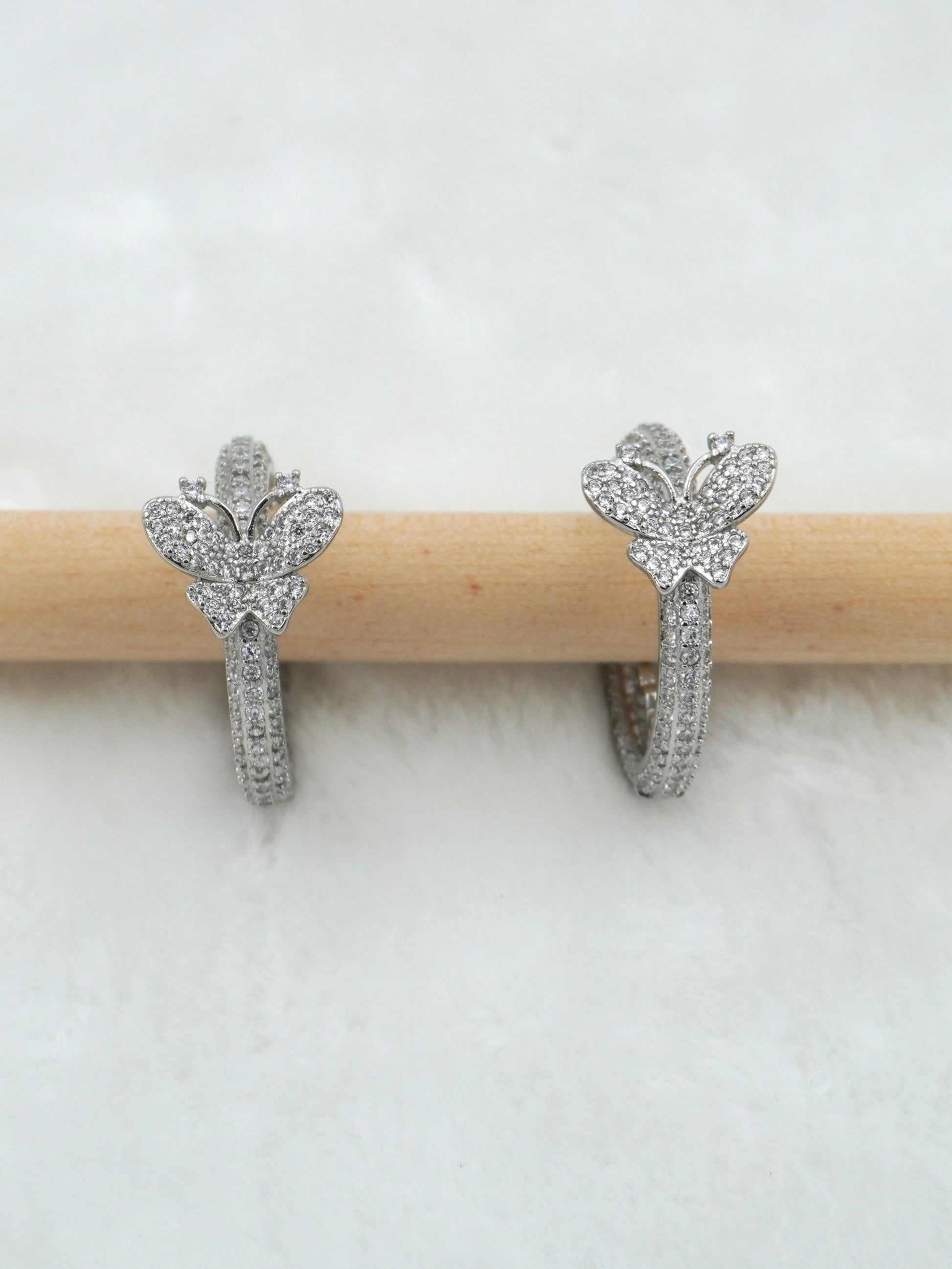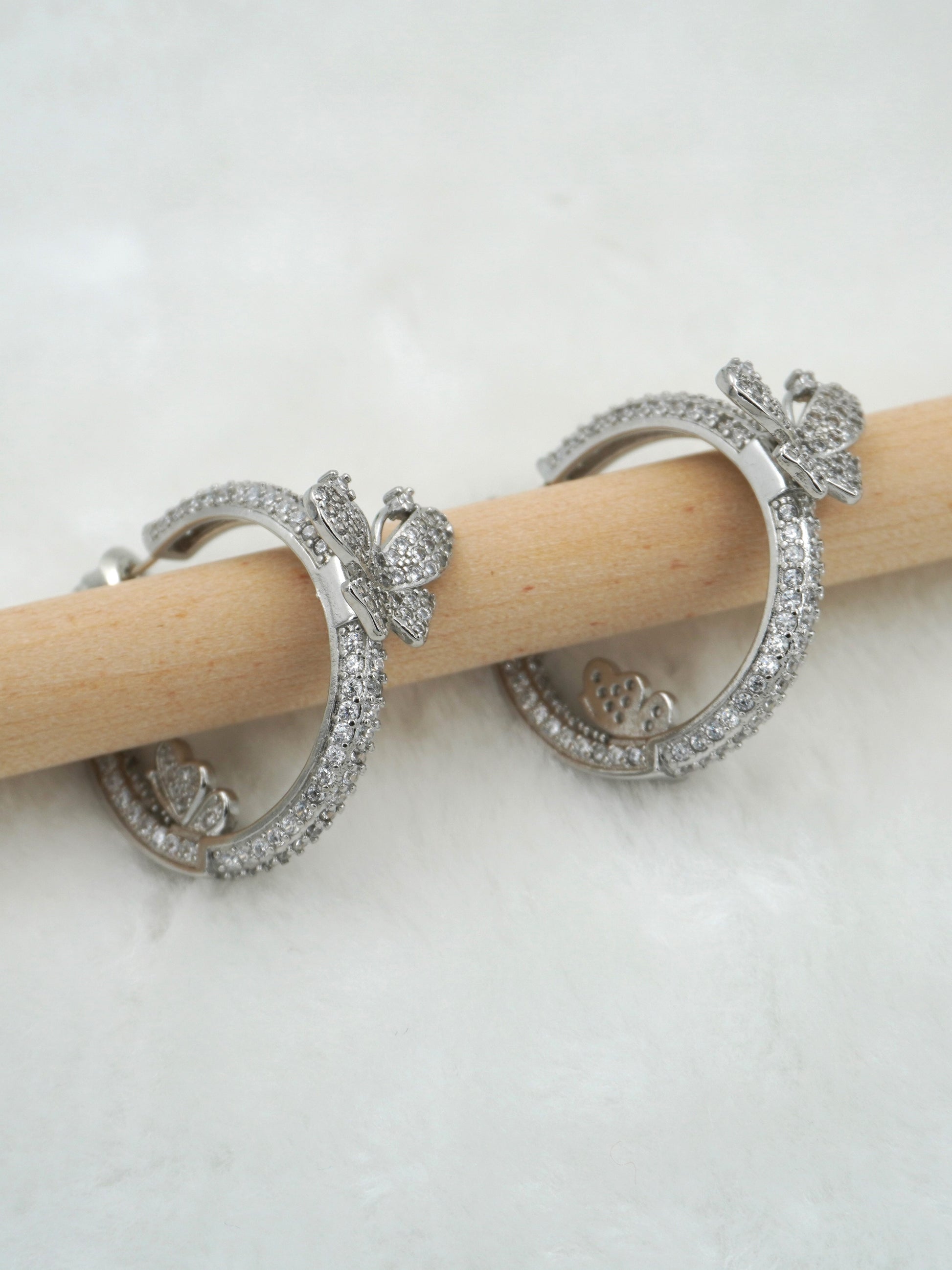 Hoop earrings are a style of earrings that are circular or semi-circular in shape and typically made from metal tubing or wire. They form a complete circle or oval shape and come in various sizes, ranging from small hoops that hug the earlobe to larger hoops that dangle below the earlobe. Hoop earrings can be simple and classic or adorned with gemstones, beads, or other decorative elements. They are a popular choice for both casual and formal wear, adding a stylish and sometimes bold accent to an outfit.