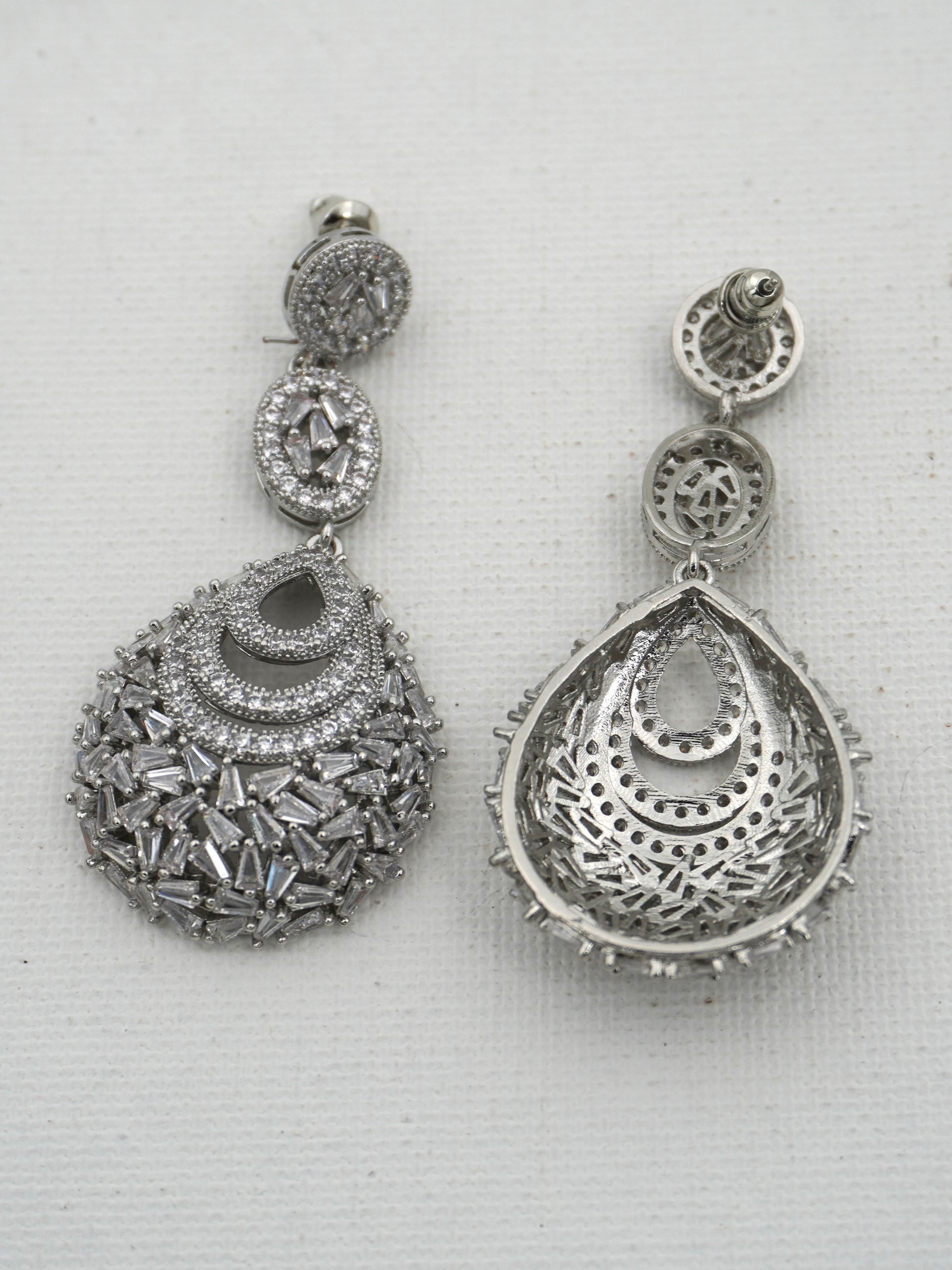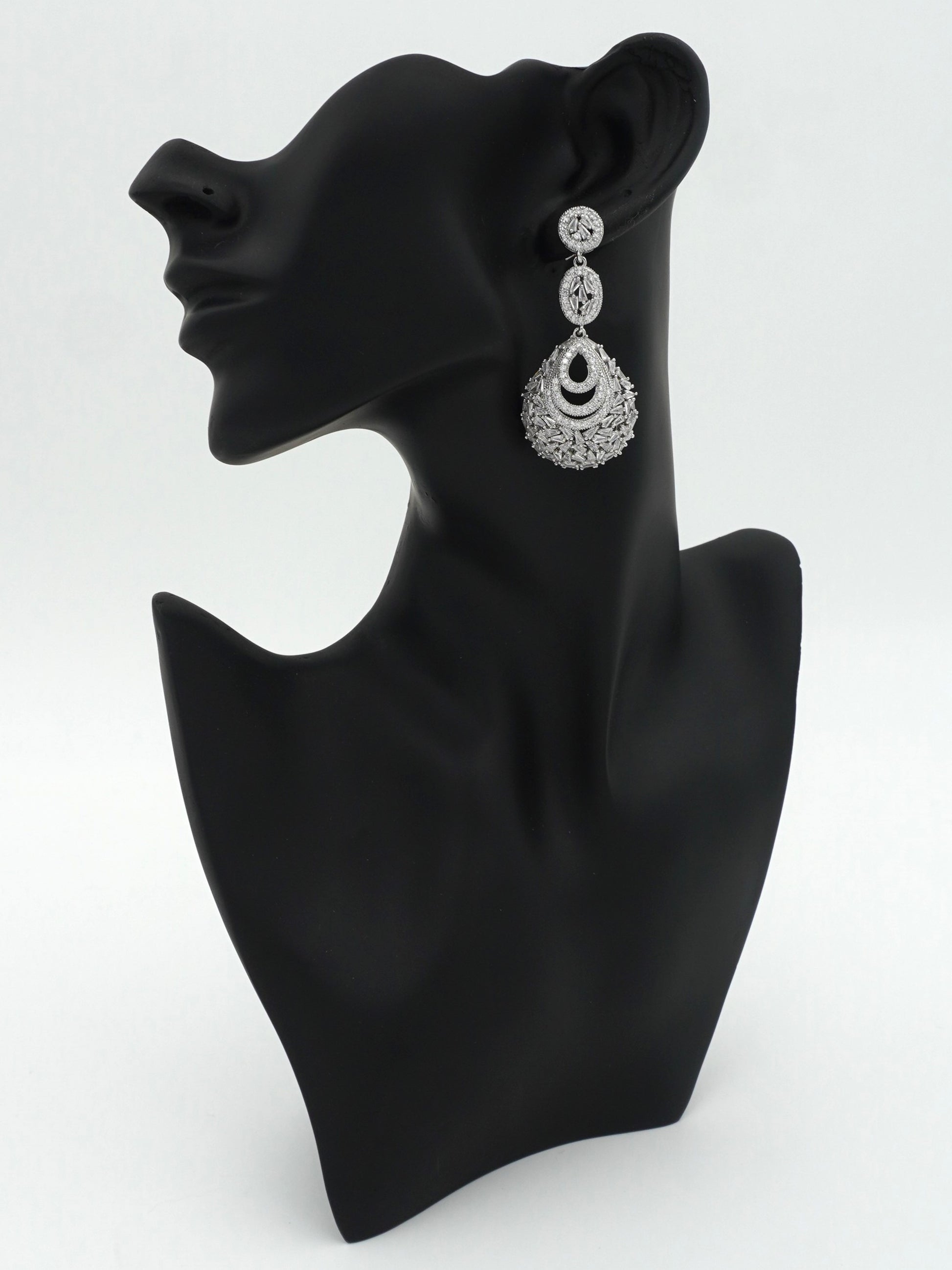 "Dangler earrings" are a type of earring characterized by a design that hangs down below the earlobe, creating a dangling effect. They are typically attached to the earlobe with a stud or hook and feature a decorative element that extends below the earlobe. Dangler earrings come in various styles, lengths, and designs, ranging from simple chains or single gemstones to more elaborate designs with multiple components such as beads, charms, feathers, or intricate metalwork. They are popular for adding movement and a stylish accent to an outfit, often worn for both casual and formal occasions depending on their design and materials.