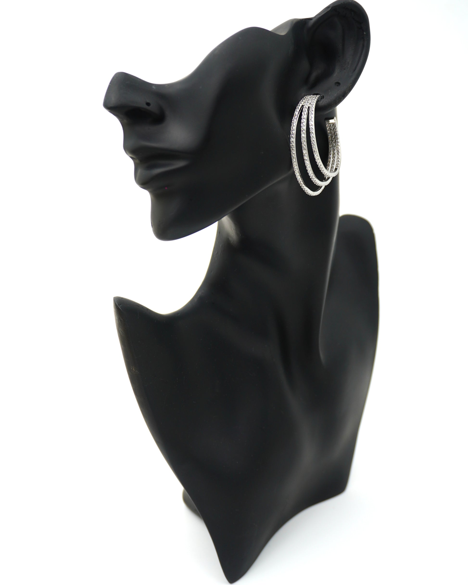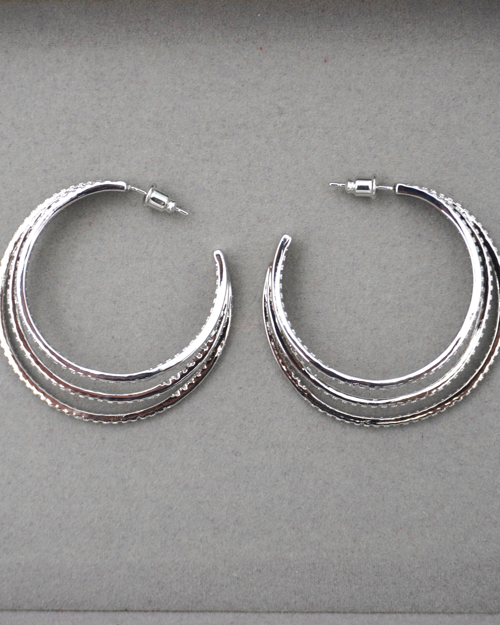 Elevate your everyday glamour with these sophisticated Triple-Row American Diamond Hoop Earrings. Featuring a unique tiered design, these hoops are crafted with three concentric bands of shimmering white stones that create a stunning 3D effect. The rich silver plating adds a classic, warm glow, making them the perfect versatile accessory for both office wear and festive celebrations. Lightweight and effortlessly chic, these hoops offer the timeless brilliance of diamonds in a modern, easy-to-wear style.