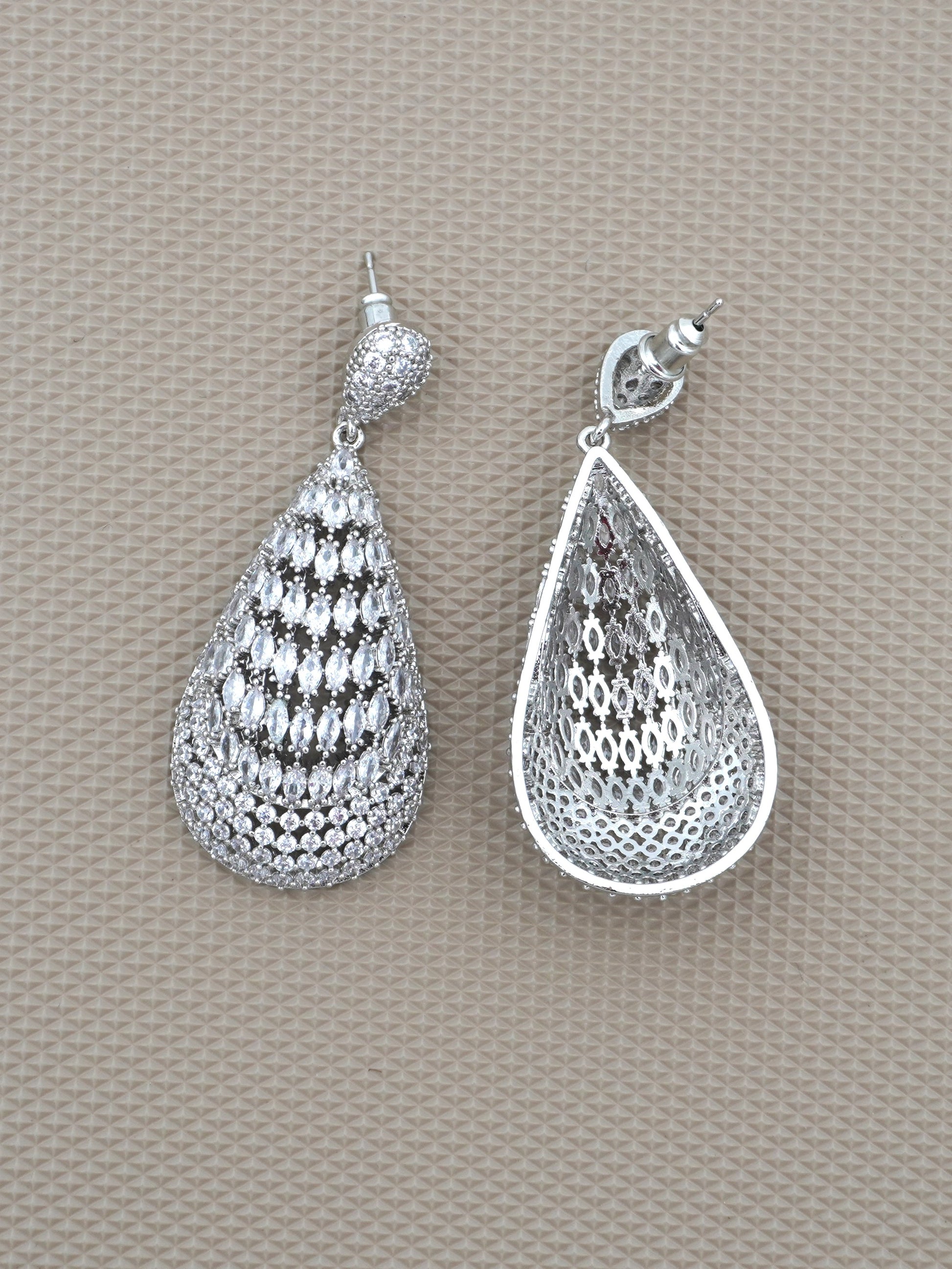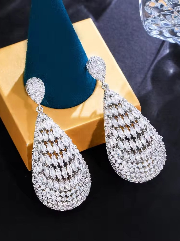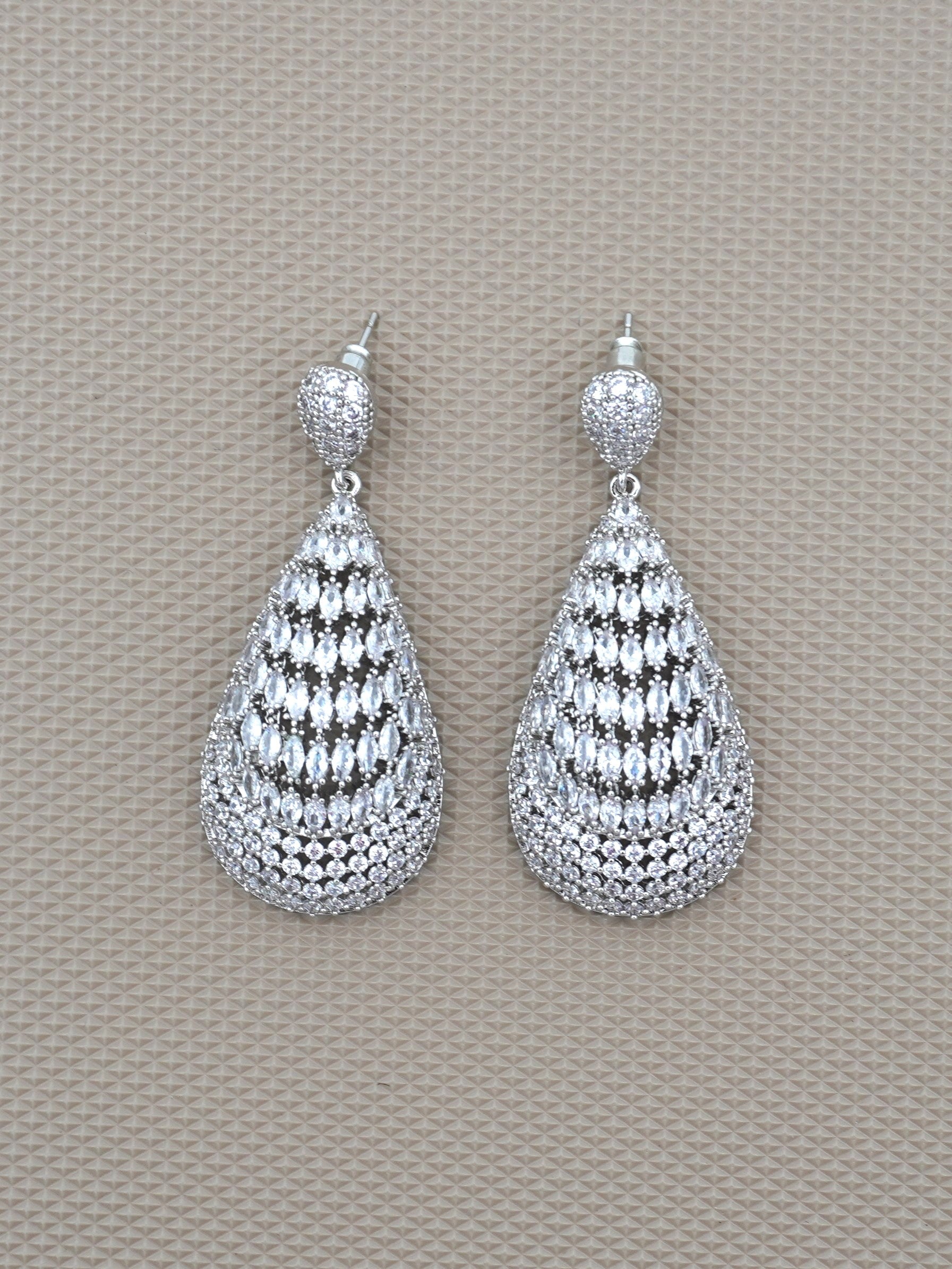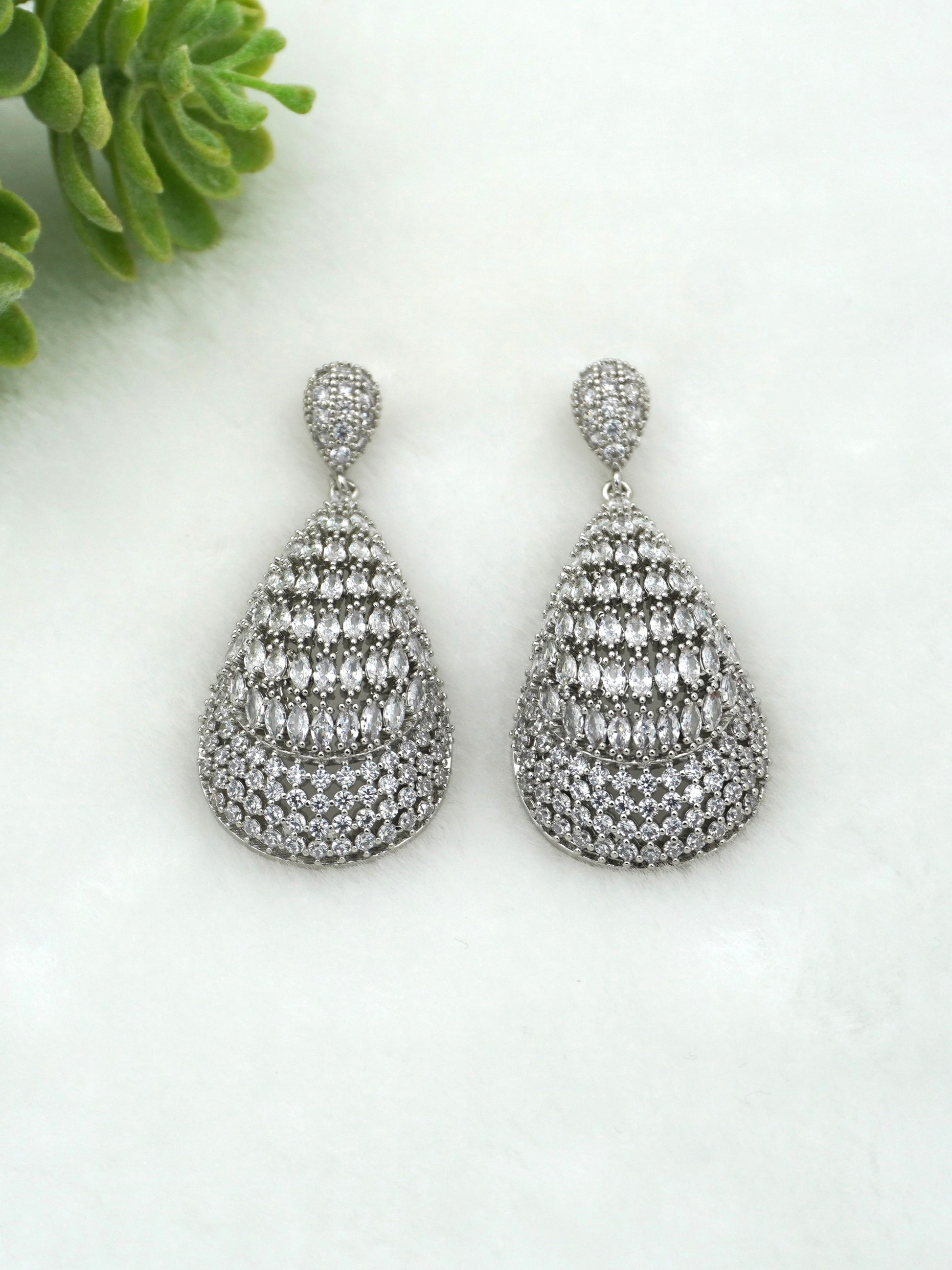 "Dangler earrings" are a type of earring characterized by a design that hangs down below the earlobe, creating a dangling effect. They are typically attached to the earlobe with a stud or hook and feature a decorative element that extends below the earlobe. Dangler earrings come in various styles, lengths, and designs, ranging from simple chains or single gemstones to more elaborate designs with multiple components such as beads, charms, feathers, or intricate metalwork. They are popular for adding movement and a stylish accent to an outfit, often worn for both casual and formal occasions depending on their design and materials.