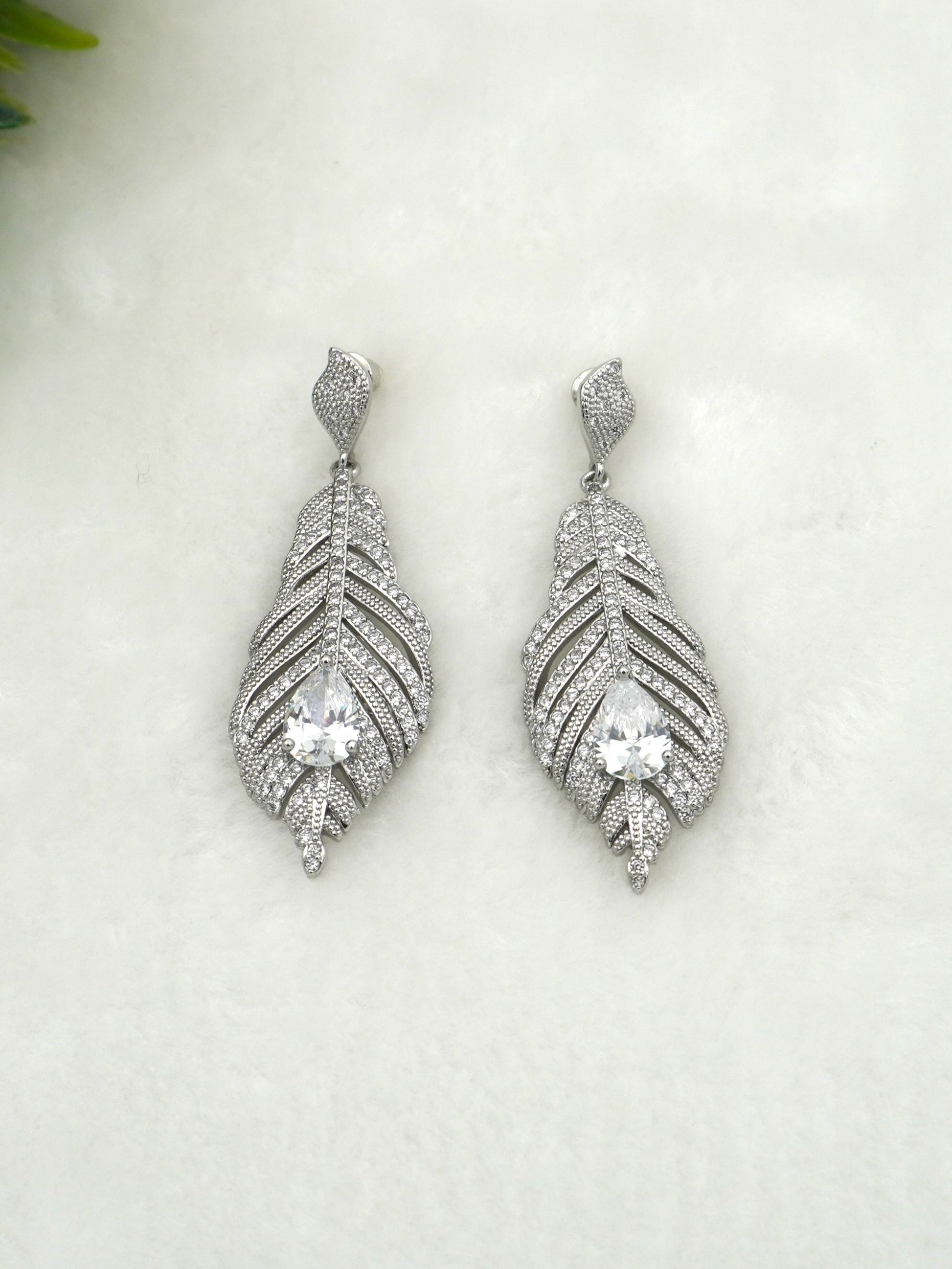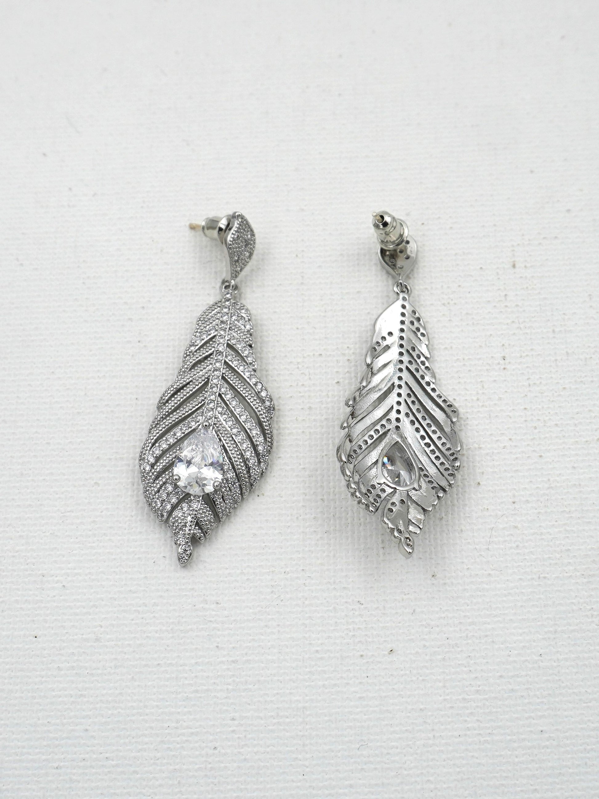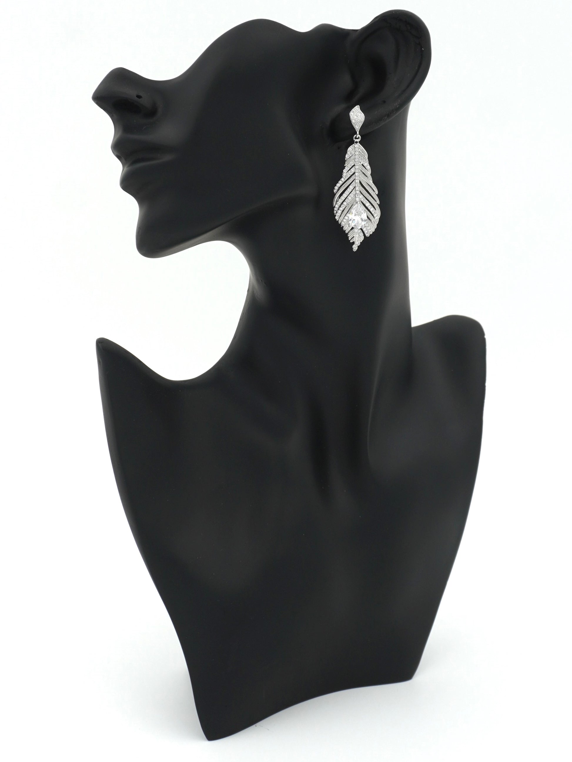 "Dangler earrings" are a type of earring characterized by a design that hangs down below the earlobe, creating a dangling effect. They are typically attached to the earlobe with a stud or hook and feature a decorative element that extends below the earlobe. Dangler earrings come in various styles, lengths, and designs, ranging from simple chains or single gemstones to more elaborate designs with multiple components such as beads, charms, feathers, or intricate metalwork. They are popular for adding movement and a stylish accent to an outfit, often worn for both casual and formal occasions depending on their design and materials.