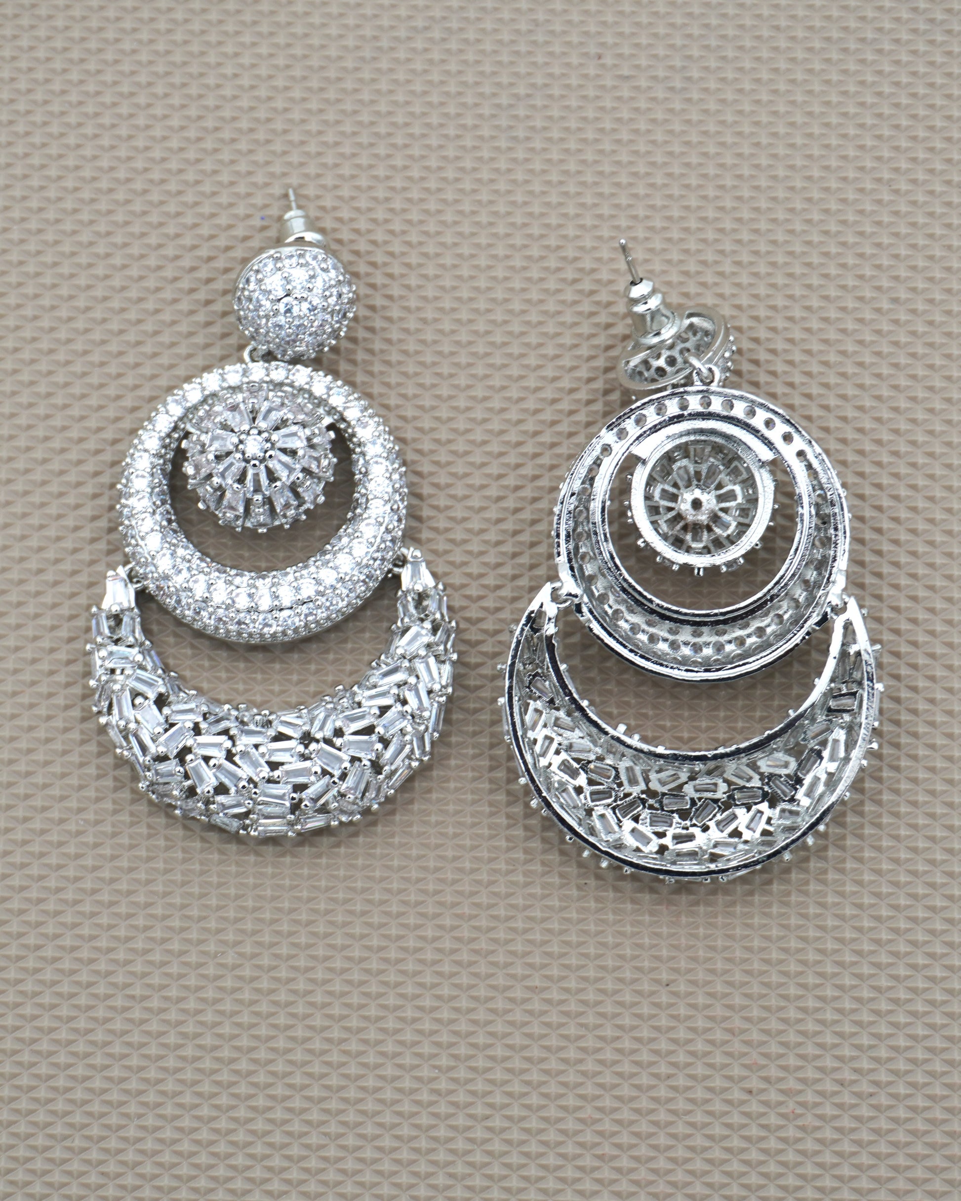 "Dangler earrings" are a type of earring characterized by a design that hangs down below the earlobe, creating a dangling effect. They are typically attached to the earlobe with a stud or hook and feature a decorative element that extends below the earlobe. Dangler earrings come in various styles, lengths, and designs, ranging from simple chains or single gemstones to more elaborate designs with multiple components such as beads, charms, feathers, or intricate metalwork. They are popular for adding movement and a stylish accent to an outfit, often worn for both casual and formal occasions depending on their design and materials.