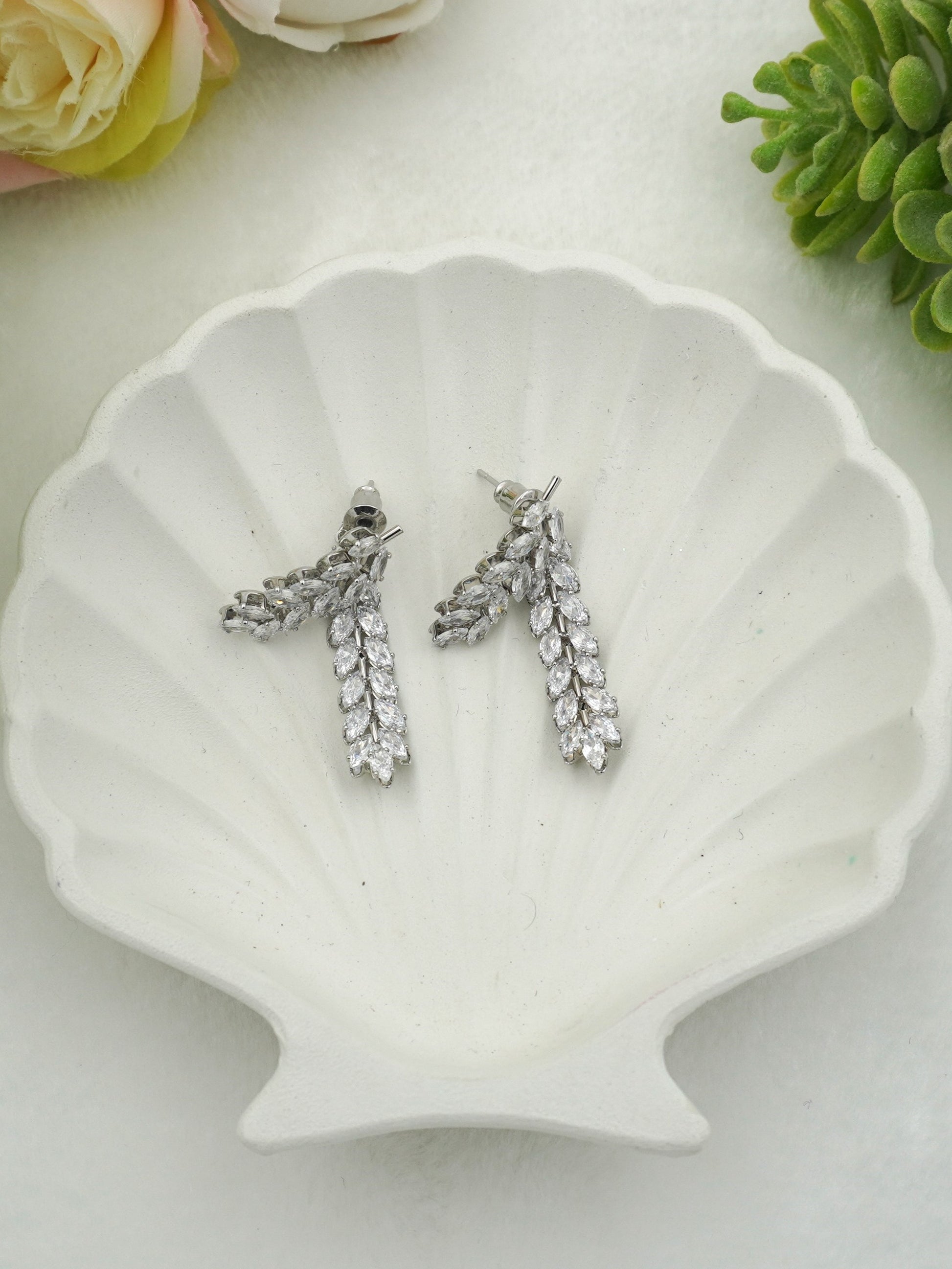 "Dangler earrings" are a type of earring characterized by a design that hangs down below the earlobe, creating a dangling effect. They are typically attached to the earlobe with a stud or hook and feature a decorative element that extends below the earlobe. Dangler earrings come in various styles, lengths, and designs, ranging from simple chains or single gemstones to more elaborate designs with multiple components such as beads, charms, feathers, or intricate metalwork. They are popular for adding movement and a stylish accent to an outfit, often worn for both casual and formal occasions depending on their design and materials.